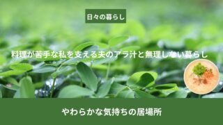 日々の暮らし 夫が作ってくれる週末のアラ汁と、無理しない暮らし 料理が苦手な私を支えてくれるのは、夫が作る週末のアラ汁。無理をせず、外食や作り置きを取り入れながら、負担のない暮らしを工夫しています。 2025.10.05 日々の暮らし