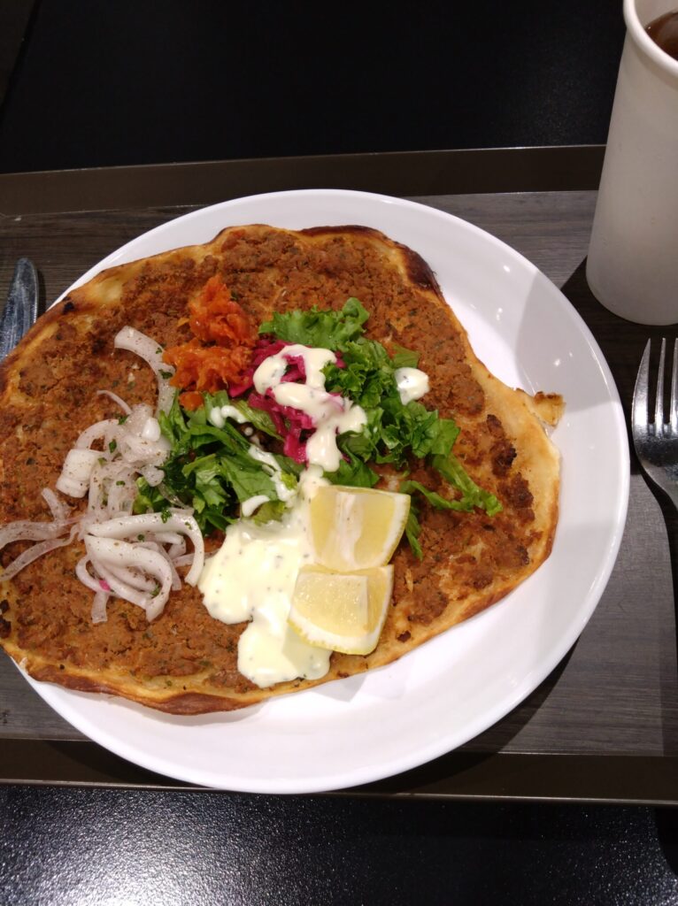 選んだのはトルコ料理のラフマージュン。薄い生地にひき肉と野菜をのせた、トルコ風のピザです。