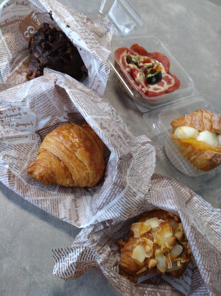 映画の帰り道には百貨店でアクセサリーを見て回り、その後「ル・クロワッサンプチ」というお店で可愛いパンセットを買いました。スイーツ系とおかず系のパンを組み合わせて選べるもので、5個セットで920円。どれも見た目が愛らしく、食べる前から心が弾みました。