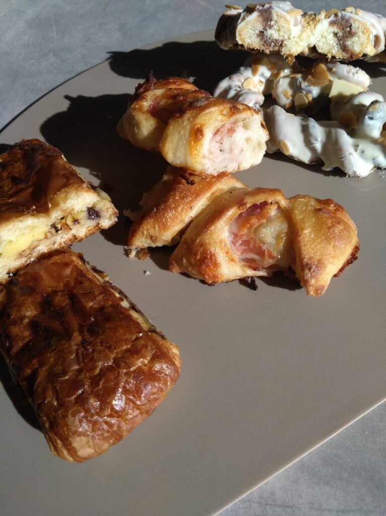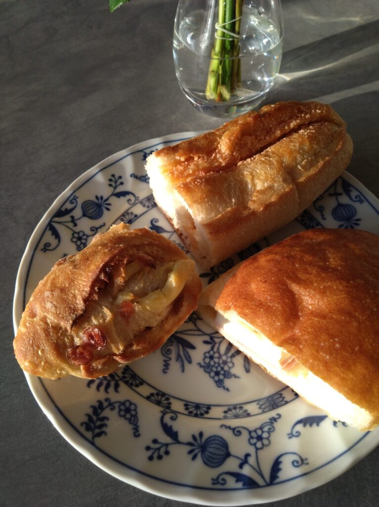 また別の日には、ベーコンエピ、ホワイトチョコがけのデニッシュ、チョコ入りデニッシュを選びました。