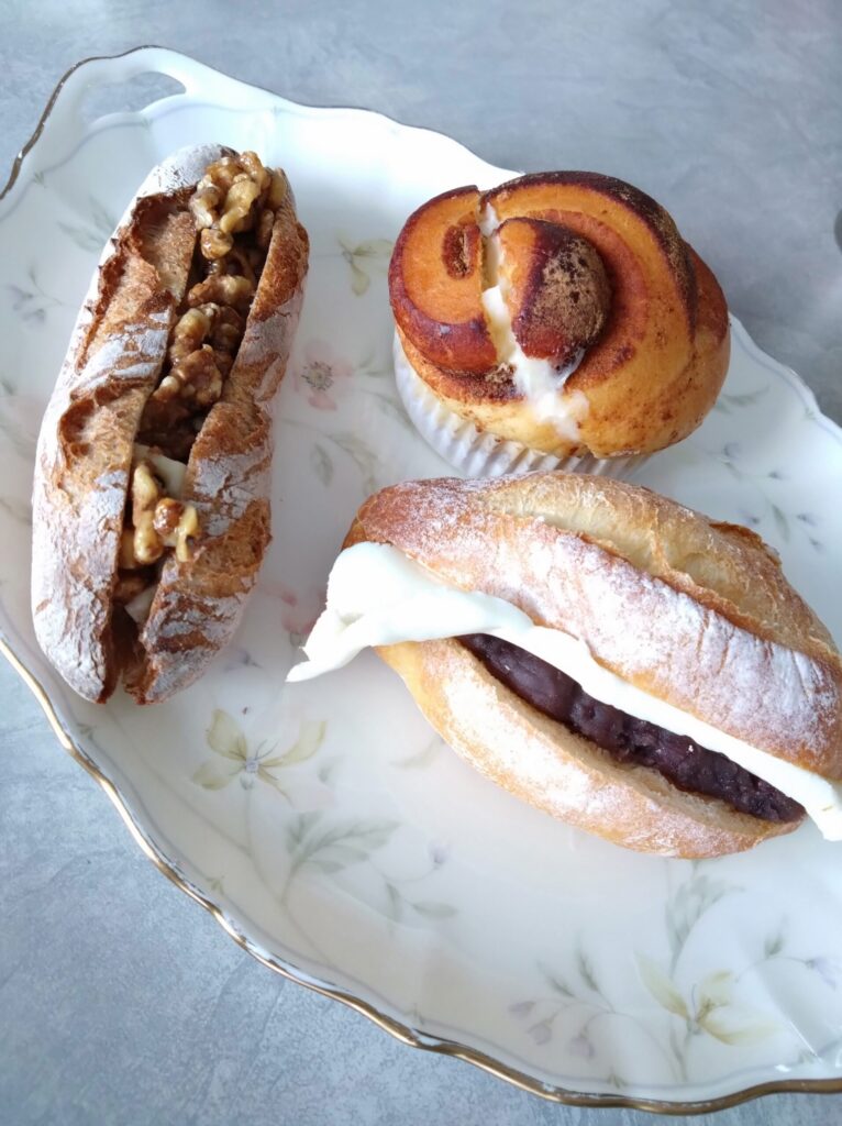 シナモンロール、ハニーチーズセーグル、あんバターサンドを購入。